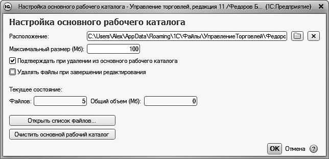 ♦ Удалять файлы при завершении редактирования – при установленном данном флажке после переноса файла в информационную базу он автоматически стирается с жесткого диска. Данный параметр обычно используется для экономии места на жестком диске или в целях повышения безопасности.