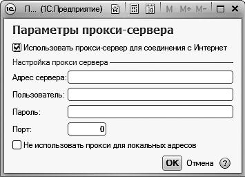 Первое, что нужно сделать в данном окне, – установить флажок Использовать прокси-сервер для соединения с Интернет. Только после этого станут доступными для редактирования все остальные параметры. Затем в соответствующих полях указывается адрес сервера, имя пользователя и пароль, а также номер порта. Выполненные настройки вступают в силу после нажатия кнопки OK.