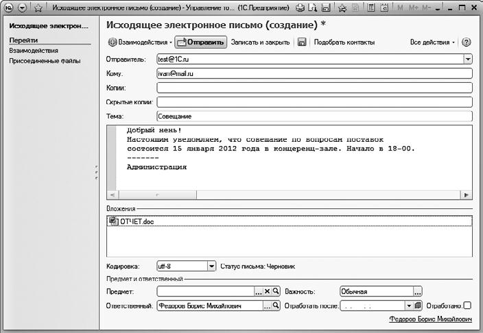 Рис. 3.13. Формирование исходящего электронного сообщения