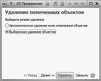 Для удаления помеченных для этого объектов следует на панели действий раздела Администрирование выбрать пункт Удаление помеченных объектов. В результате откроется окно, изображенное на рис. 4.4.