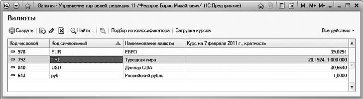 К базовым классификаторам «1С: Управление торговлей 8.2» относятся классификатор валют, классификатор банков и классификатор стран мира. Далее рассмотрим порядок работы с каждым из них.