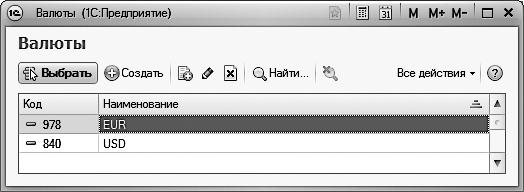 Все регистрируемые в классификаторе валюты автоматически попадают в этот список. Для каждой позиции списка в соответствующих колонках показываются следующие сведения: