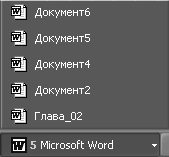 После этого, чтобы получить доступ к требуемому файлу, надо щелкнуть левой кнопкой мыши на объединенной кнопке, и в появившемся меню выбрать его имя. На рисунке 2.8 показан пример, когда в одну кнопку собрано пять файлов, открываемых текстовым редактором Word (с которым, кстати, мы подробно познакомимся ниже).