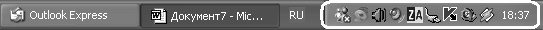 По умолчанию область быстрого запуска содержит значки Свернуть все окна (данный значок предназначен для быстрого сворачивания сразу всех открытых окон; кстати, к аналогичному результату приводит нажатие комбинации клавиш Windows+D), Internet Explorer, Windows Media Player и Microsoft Outlook.