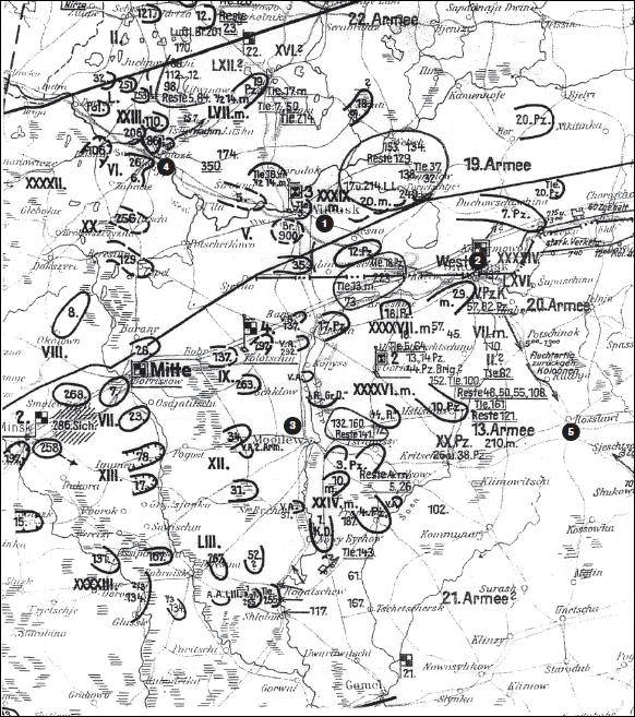 Карта 11. Позиции группы армий «Центр» на 15 июля 1941 г.:
