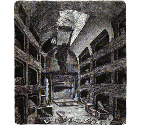 Долгое время катакомбы, бывшие некогда каменоломнями, а затем древнехристианскими кладбищами, оставались нетронутыми и их существование предано было полнейшему забвению. Первые последователи евангелия воспользовались ходами прежних каменоломен и начали ставить гробы в глубокие стенные ниши, так как не хотели сжигать своих покойников и в то же время не смели хоронить их в земле. Исследование началось с древнехристианских усыпальниц, а именно с катакомб Св. Себастиана и Каликста. Вскоре после того начались раскопки языческих могил на Via Аррiа, отчасти по инициативе папы и частью благодаря двум флорентийским путешественникам, которые случайно открыли древнюю могилу и нашли в ней разрушенный саркофаг с прекрасно сохранившимся трупом молодой девушки. На её голове была корона из множества драгоценных камней; золотистые волосы были связаны зеленой шелковой лентой. Труп не подвергся ни малейшему разложению, так что казалось будто смерть наступила за день перед тем. Суди по надписи, это была дочь римского императора. Весь Рим пришел в волнение от этой находки, потому что до сих пор католическое духовенство доказывало, что только тела святых нетленны. Папа из боязни распространения языческих идей в народе, должен был наложить запрещение на всякие раскопки и изучение древностей. Между тем любовь к классической древности из Италии перешла в другие страны Европы. Весьма знаменательным фактом можно считать пребывание знаменитого Рейхлина в Риме, который даже говорил латинскую речь перед Сикстом IV.