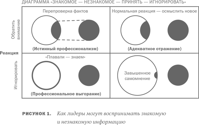 Капитану «Титаника» Эдварду Джону Смиту доложили лишь о четырех телеграммах из семи, предупреждающих об айсбергах. Почему? Просто он проигнорировал содержание предыдущих. С точки зрения его подчиненных, после первой телеграммы новая информация ему была ни к чему. С точки зрения капитана, информации там вовсе не было. Он ведь знал о льдах почти все и уже принял решение о смене курса на более безопасный маршрут. В 2000-х глава Lehman Brothers Дик Фалд точно так же игнорировал тревожные сигналы о своих рискованных операциях. Ни Смит, ни Фалд не были самодовольными и напыщенными идиотами. Они были опытными профессионалами. Профессионалами, которые провели на своем посту слишком много времени. Им казалось, что они уже готовы к любым поворотам судьбы. «Плавали – знаем», – говорим мы о своем богатом опыте в каком-либо деле.