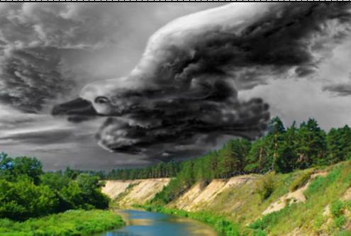 Глаза сами собой начали выделять сочетание темно-серых туч, в которых грозной чернотой выделялись крылья, голова и странный хвост.