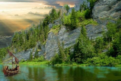 Довольные, что снова избежали опасности, они перевели ушкуй в Каму из речки и отправились вверх по течению Камы, забыв о том, что за целый день ничего не ели.