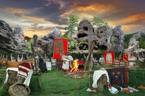Все опустили луки со стрелами, а команда Белавы, подъехав, спешилась с лошадей. Волхв Никола, выйдя вперёд, тут же поклонился святилищу и им.