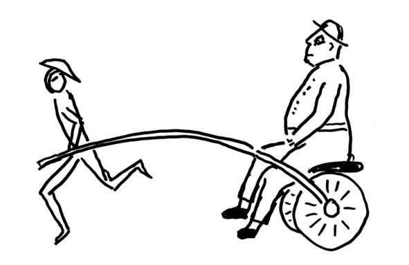 Рикшей называли такую, как у нас, легкую двухколесную коляску с сиденьем для одного пассажира. Вместо лошади его везет человек, быстроногий бегун. Его тоже называют «рикша». И тогда мы стали называть Ксанину коляску «рикша». Я очень любила катать Ксану в этой «рикше» по всем комнатам.