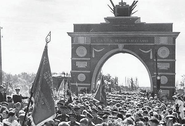 Торжественный марш войск через Триумфальную арку в Автово, 8 июля 1945 г.