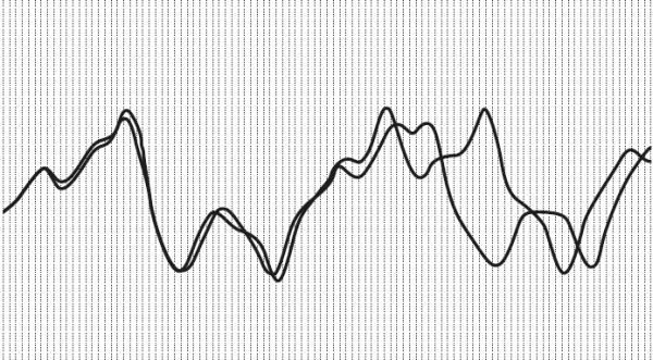 Ученый решил внимательно изучить, каким образом разошлись два почти идентичных исходно графика. Он скопировал одну из полученных кривых на прозрачную бумагу и наложил ее на вторую, чтобы проследить отклонения. Первые максимумы почти совпали, но потом одна из линий начала слегка отставать. Когда оба графика достигли второго максимума, их фазы уже определенно различались. К третьему и четвертому максимумам все сходство исчезало.