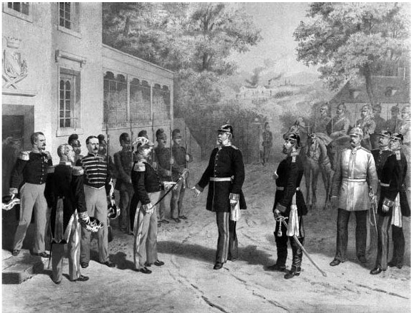 Император Наполеон III сдается под Седаном канцлеру Бисмарку, 1 сентября 1870 г.