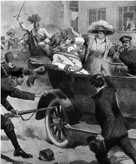 Как утверждают некоторые историки, ужасных событий августа 1914 года можно было избежать, – по их мнению, Первая мировая война началась вследствие стечения обстоятельств. Толчком к ней послужило совершенно нелепое убийство, произошедшее в Сараево 28 июня 1914 года. Сараевские события были длинной цепочкой случайностей. Наследник австро-венгерского престола эрцгерцог Франц Фердинанд решил посетить Боснию с официальным визитом, чтобы увидеть запланированные армейские маневры. Это было неосмотрительное решение, поскольку как Босния, так и Балканы в целом после двух Балканских войн 1912–1913 годов представляли собой пороховую бочку самого ярого в Европе национализма. Визит эрцгерцога в Сараево стал не чем иным, как австрийской провокацией сербских националистов. Франц Фердинанд был наследником австро-венгерского престола. При условии, что правящему императору Францу Иосифу на тот момент уже исполнилось 84 года, невиданный по тем временам возраст, многие считали эрцгерцога Франца Фердинанда де-факто главой государства. Во всяком случае его портреты уже печатали и вывешивали по всей империи, что делалось только в отношении правящего монарха.
