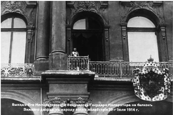 Царь Николай II объявляет войну Германии с балкона Зимнего дворца