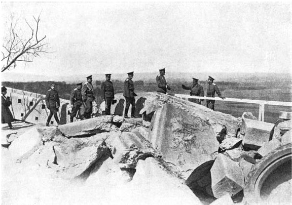 Царь Николай II обходит руины Перемышльской крепости. Взятие крепости стало большой победой русской армии. Многомесячная осада крепости была самой серьезной в ходе Первой мировой войны