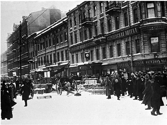 Бунт в феврале 1917 г. устроили голодные питерские бабы, но революцию сделали солдаты Петроградского гарнизона, которые перешли на их сторону с оружием в руках. Солдатская баррикада с артиллерией на Литейном проспекте
