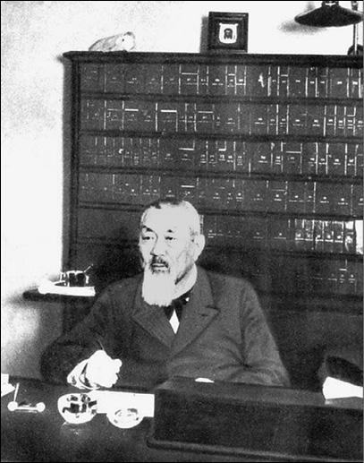 Врач тибетской медицины, крестник императора Александра III П.А. Бадмаев в своем кабинете на Литейном проспекте, 16. Фото 1914 г.