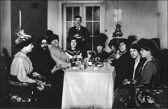 Григорий Распутин в кругу своих почитателей. 1910-е гг.