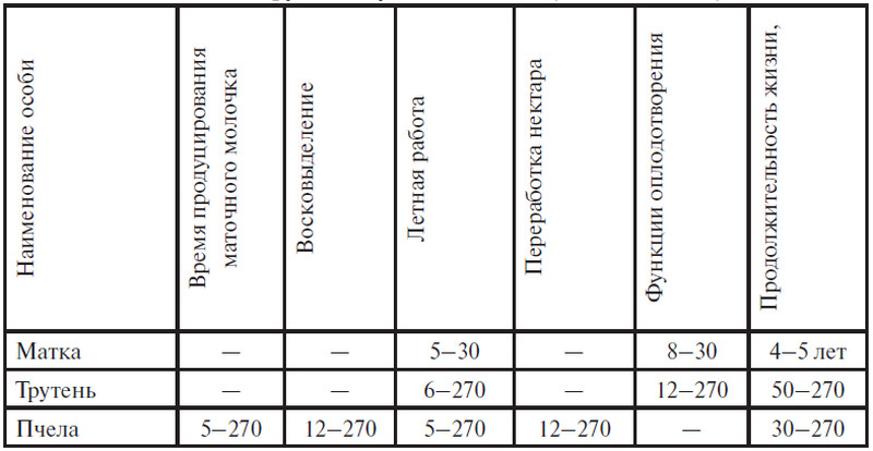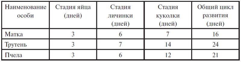 Ниже приводятся таблицы развития пчел, маток и трутней.