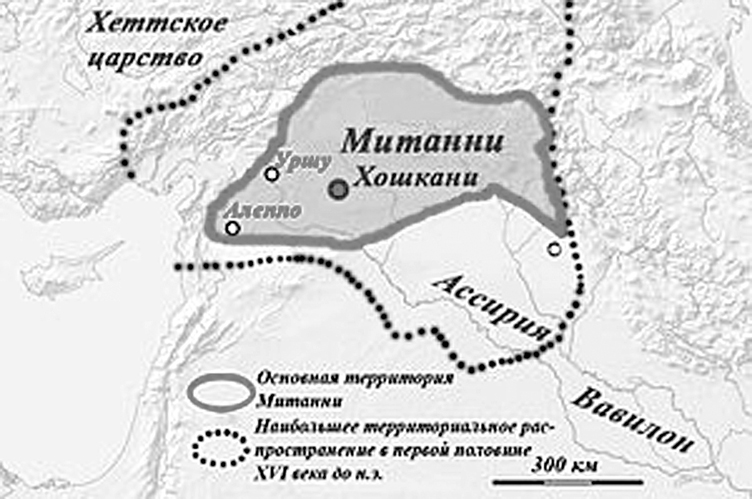 Хурриты и урарты – это два древних народа, принадлежавших к хуррито-урартской языковой семье, которую большинство ученых не относит к индоевропейской группе. Если урарты распространялись по Армянскому нагорью, то хурриты мигрировали в Северную Месопотамию и Каппадокию[5], а также в Сирию и Палестину, где они жили вперемежку с семитскими народами. В XVI–XIII веках до н. э. в Северной Месопотамии существовало хурритское государство Митанни, известное также под названиями Ханигальбат и Нахарин. Государство это было сильным, оно не раз воевало с Хеттским царством, а в XIII веке до н. э. покорило государство Хайаса, о котором уже упоминалось выше. Но со временем Митаннийское царство ослабло и 1250 году до н. э. было уничтожено ассирийцами.