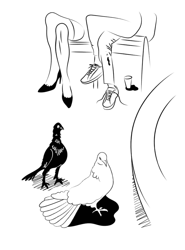 Дама не выдержала напора, поправила свою чёлку и с новой причёской решительно свалила. Не исключаю, что двинулась она в сторону шестого района, где давно живут голуби с совсем другими манерами.