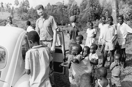 John Kaiser during his first years in Kenya, in the 1960s. He lived among the Kisii in the fertile highlands of western Kenya. A stout six foot two, he built churches across the countryside, quick, crude structures of red earth and river-bottom sand, and went up ladders with pockets stuffed with bricks. Photograph courtesy of the Kaiser family.