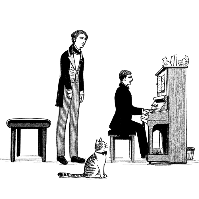 Seit dieser Zeit litt mich der Meister nicht allein auf dem Schreibtisch, sondern er sah es sogar gern, wenn ich, arbeitete er selbst, heraufsprang, und mich vor ihm unter die Schriften hinlagerte.