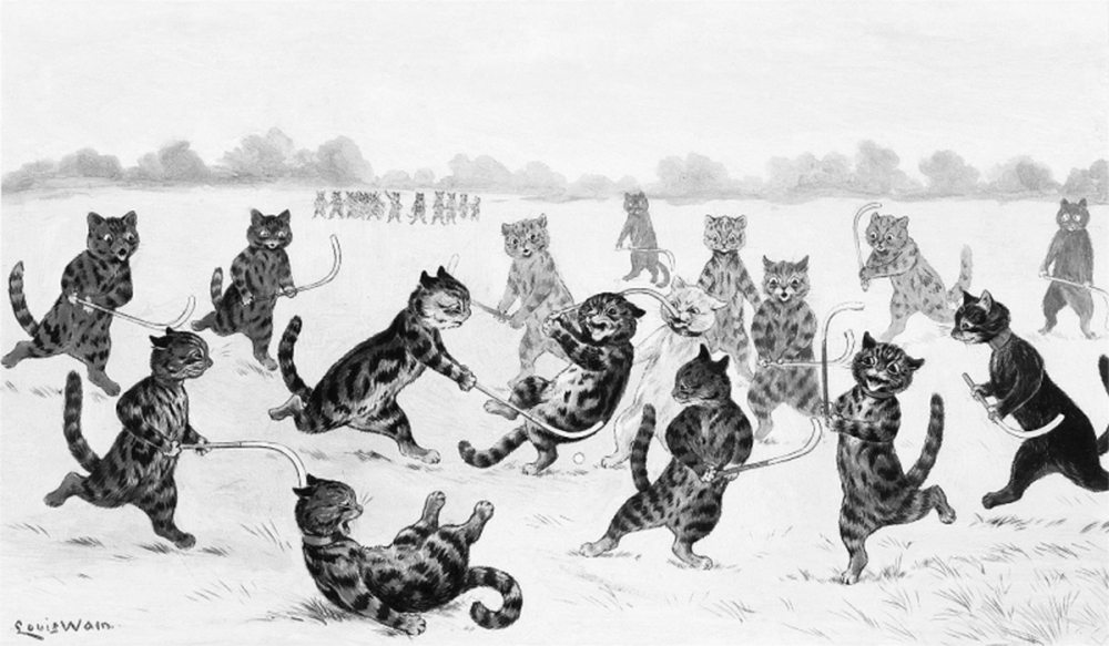 Eine zweite böse Schwierigkeit fand ich in dem Eintunken der Feder in das Tintenfaß. Nicht glücken wollt' es mir nämlich, bei dem Eintunken das Pfötchen zu schonen, immer kam es mit hinein in die Tinte, und so konnte es nicht fehlen, daß die ersten Schriftzüge, mehr mit der Pfote als mit der Feder gezeichnet, etwas groß und breit gerieten. Unverständige mochten daher meine ersten Manuskripte beinahe nur für mit Tinte beflecktes Papier ansehen. Genies werden den genialen Kater in seinen ersten Werken leicht erraten und über die Tiefe, über die Fülle des Geistes, wie er zuerst aus unversiegbarer Quelle aussprudelte, erstaunen, ja ganz außer sich geraten. Damit die Welt sich dereinst nicht zanke über die Zeitfolge meiner unsterblichen Werke, will ich hier sagen, daß ich zuerst den philosophisch-sentimental-didaktischen Roman schrieb:»Gedanke und Ahnung, oder Kater und Hund«. Schon dieses Werk hätte ungeheures Aufsehen machen können. Dann, in allen Sätteln gerecht, schrieb ich ein politisches Werk, unter dem Titel:»Über Mausefallen und deren Einfluß auf Gesinnung und Tatkraft der Katzheit;«hierauf fühlt' ich mich begeistert zu der Tragödie:»Rattenkönig Kawdallor«. Auch diese Tragödie hätte auf allen nur erdenklichen Theatern unzähligemal mit dem lärmendsten Beifall gegeben werden können. Den Reihen meiner sämtlichen Werke sollen diese Erzeugnisse meines hoch emporstrebenden Geistes eröffnen; über den Anlaß, sie zu schreiben, werde ich mich gehörigen Orts auslassen können.