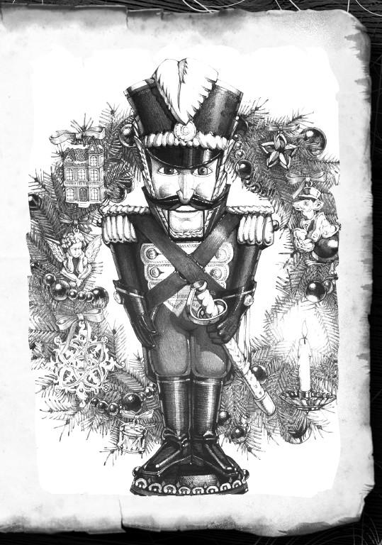 Щелкунчик представлял собой популярную в те времена механическую куклу – солдатика с большим ртом, завитой бородой и косичкой сзади. В рот вкладывался орех, дергалась косичка, челюсти смыкались – и орех расколот. Подобных кукол мастерили в немецкой Тюрингии в XVII–XVIII веках.