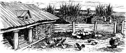 Но гость отказался и от почесывания пяток. Хозяйка вышла, и он тот же час поспешил раздеться, отдав Фетинье всю снятую с себя сбрую, как верхнюю, так и нижнюю, и Фетинья, пожелав также с своей стороны покойной ночи, утащила эти мокрые доспехи. Оставшись один, он не без удовольствия взглянул на свою постель, которая была почти до потолка. Фетинья, как видно, была мастерица взбивать перины. Когда, подставивши стул, взобрался он на постель, она опустилась под ним почти до самого пола, и перья, вытесненные им из пределов, разлетелись во все углы комнаты. Погасив свечу, он накрылся ситцевым одеялом и, свернувшись под ним кренделем, заснул в ту же минуту. Проснулся на другой день он уже довольно поздним утром. Солнце сквозь окно блистало ему прямо в глаза, и мухи, которые вчера спали спокойно на стенах и на потолке, все обратились к нему: одна села ему на губу, другая на ухо, третья норовила как бы усесться на самый глаз, ту же, которая имела неосторожность подсесть близко к носовой ноздре, он потянул впросонках в самый нос, что заставило его крепко чихнуть, – обстоятельство, бывшее причиною его пробуждения. Окинувши взглядом комнату, он теперь заметил, что на картинах не всё были птицы: между ними висел портрет Кутузова и писанный масляными красками какой-то старик с красными обшлагами на мундире, как на́шивали при Павле Петровиче. Часы опять испустили шипение и пробили десять; в дверь выглянуло женское лицо и в ту же минуту спряталось, ибо Чичиков, желая получше заснуть, скинул с себя совершенно все. Выглянувшее лицо показалось ему как будто несколько знакомо. Он стал припоминать себе: кто бы это был, и наконец вспомнил, что это была хозяйка. Он надел рубаху; платье, уже высушенное и вычищенное, лежало возле него. Одевшись, подошел он к зеркалу и чихнул опять так громко, что подошедший в это время к окну индейский петух – окно же было очень близко от земли – заболтал ему что-то вдруг и весьма скоро на своем странном языке, вероятно «желаю здравствовать», на что Чичиков сказал ему дурака. Подошедши к окну, он начал рассматривать бывшие перед ним виды: окно глядело едва ли не в курятник; по крайней мере, находившийся перед ним узенький дворик весь был наполнен птицами и всякой домашней тварью. Индейкам и курам не было числа; промеж них расхаживал петух мерными шагами, потряхивая гребнем и поворачивая голову набок, как будто к чему-то прислушиваясь; свинья с семейством очутилась тут же; тут же, разгребая кучу сора, съела она мимоходом цыпленка и, не замечая этого, продолжала уписывать арбузные корки своим порядком. Этот небольшой дворик, или курятник, переграждал дощатый забор, за которым тянулись пространные огороды с капустой, луком, картофелем, свеклой и прочим хозяйственным овощем. По огороду были разбросаны кое-где яблони и другие фруктовые деревья, накрытые сетями для защиты от сорок и воробьев, из которых последние целыми косвенными тучами переносились с одного места на другое. Для этой же самой причины водружено было несколько чучел на длинных шестах, с растопыренными руками; на одном из них надет был чепец самой хозяйки. За огородами следовали крестьянские избы, которые хотя были выстроены врассыпную и не заключены в правильные улицы, но, по замечанию, сделанному Чичиковым, показывали довольство обитателей, ибо были поддерживаемы как следует: 