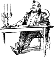 Здесь Чичиков вышел совершенно из границ всякого терпения, хватил в сердцах стулом об пол и посулил ей черта.