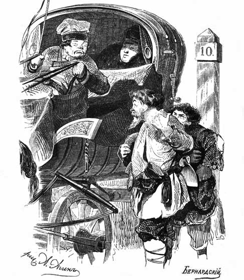 На в опрос, далеко ли деревня Заманиловка, мужики сняли шляпы, и один из них, бывший поумнее и носивший бороду клином, отвечал:
