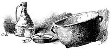 Наши путешественники останавливались только на несколько минут для обеда, причем ехавший с ними отряд, состоявший из десяти казаков, слезал с лошадей, отвязывал деревянные баклажки с горелкою и тыквы, употребляемые вместо сосудов. Ели только хлеб с салом или коржи, пили только по одной чарке, единственно для подкрепления, потому что Тарас Бульба не позволял никогда напиваться в дороге, и продолжали путь до вечера.