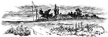 Чрез три дня после этого они были уже недалеко от места, бывшего предметом их поездки. В воздухе вдруг захолодело: они почувствовали близость Днепра. Вот он сверкает вдали и темною полосою отделился от горизонта. Он веял холодными волнами и расстилался ближе, ближе и наконец обхватил половину всей поверхности земли. Это было то место Днепра, где он, дотоле спертый порогами, брал наконец свое и шумел, как море, разлившись по воле, где брошенные в средину его острова вытесняли его еще далее из берегов и волны его стлались широко по земле, не встречая ни утесов, ни возвышений. Казаки сошли с коней своих, взошли на паром и через три часа плавания были уже у берегов острова Хортицы, где была тогда Сечь, так часто переменявшая свое жилище.