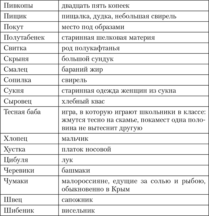 В этой книжке есть много слов, не всякому понятных. Здесь они почти все означены: