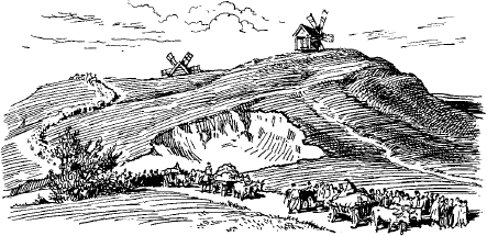 Одиноко в стороне тащился на истомленных волах воз, наваленный мешками, пенькою, полотном и разною домашнею поклажею, за которым брел, в чистой полотняной рубашке и запачканных полотняных шароварах, его хозяин. Ленивою рукой обтирал он катившийся градом пот со смуглого лица и даже капавший с длинных усов, напудренных тем неумолимым парикмахером, который без зову является и к красавице, и к уроду и насильно пудрит несколько тысяч уже лет весь род человеческий. Рядом с ним шла привязанная к возу кобыла, смиренный вид которой обличал преклонные лета ее. Много встречных, и особливо молодых парубков, брались за шапку, поравнявшись с нашим мужиком. Однако ж не седые усы и не важная поступь его заставляли это делать; стоило только поднять глаза немного вверх, чтоб увидеть причину такой почтительности: на возу сидела хорошенькая дочка с круглым личиком, с черными бровями, ровными дугами поднявшимися над светлыми карими глазами, с беспечно улыбавшимися розовыми губками, с повязанными на голове красными и синими лентами, которые, вместе с длинными косами и пучком полевых цветов, богатою короною покоились на ее очаровательной головке. Все, казалось, занимало ее; все было ей чудно́, ново… и хорошенькие глазки беспрестанно бегали с одного предмета на другой. Как не рассеяться! в первый раз на ярмарке! Девушка в осьмнадцать лет в первый раз на ярмарке!.. Но ни один из прохожих и проезжих не знал, чего ей стоило упросить отца взять с собою, который и душою рад бы был это сделать прежде, если бы не злая мачеха, выучившаяся держать его в руках так же ловко, как он вожжи своей старой кобылы, тащившейся, за долгое служение, теперь на продажу. Неугомонная супруга… но мы и позабыли, что и она тут же сидела на высоте воза, в нарядной шерстяной зеленой кофте, по которой, будто по горностаевому меху, нашиты были хвостики, красного только цвета, в богатой плахте, пестревшей, как шахматная доска, и в ситцевом цветном очипке, придававшем какую-то особенную важность ее красному, полному лицу, по которому проскальзывало что-то столь неприятное, столь дикое, что каждый тотчас спешил перенести встревоженный взгляд свой на веселенькое личико дочки.