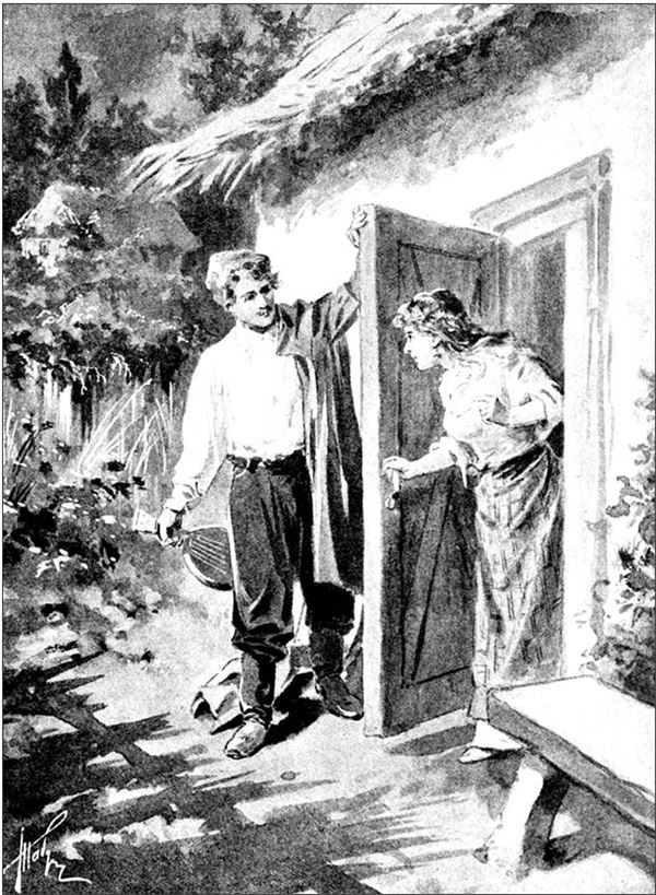 «Спит ли моя ясноокая Ганна?» – думал он, подходя к знакомой нам хате с вишневыми деревьями. Среди тишины послышался тихий говор. Левко остановился. Между деревьями забелела рубашка… «Что это значит?» – подумал он и, подкравшись поближе, спрятался за дерево. При свете месяца блистало лицо стоявшей перед ним девушки… Это Ганна! Но кто же этот высокий человек, стоявший к нему спиною? Напрасно обсматривал он: тень покрывала его с ног до головы. Спереди только он был освещен немного; но малейший шаг вперед Левка уже подвергал его неприятности быть открытым. Тихо прислонившись к дереву, решился он остаться на месте. Девушка ясно выговорила его имя.