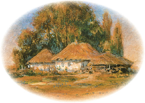 – Как тихо колышется вода, будто дитя в люльке! – продолжала Ганна, указывая на пруд, угрюмо обставленный темным кленовым лесом и оплакиваемый вербами, потопившими в нем жалобные свои ветви. Как бессильный старец, держал он в холодных объятиях своих далекое, темное небо, обсыпая ледяными поцелуями огненные звезды, которые тускло реяли среди теплого ночного воздуха, как бы предчувствуя скорое появление блистательного царя ночи. Возле леса, на горе, дремал с закрытыми ставнями старый деревянный дом; мох и дикая трава покрывали его крышу; кудрявые яблони разрослись перед его окнами; лес, обнимая своею тенью, бросал на него дикую мрачность; ореховая роща стлалась у подножия его и скатывалась к пруду.