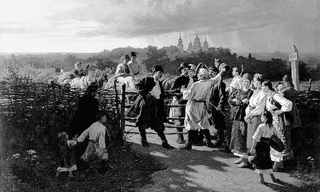 – Эге-ге-ге, земляк! да ты мастер, как вижу, обниматься! А я на четвертый только день после свадьбы выучился обнимать покойную свою Хвеську, да и то спасибо куму: бывши дружкою*, уже надоумил.