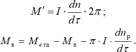 Все величины, кроме водоизмещения, будут переменными. Инерционной составляющей линии валопровода I∙(dω/dτ) можно пренебречь.