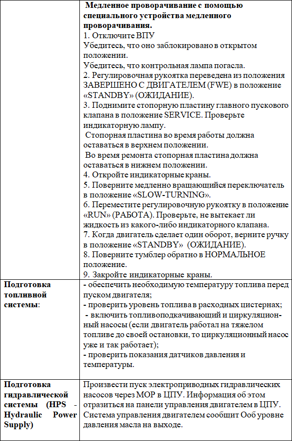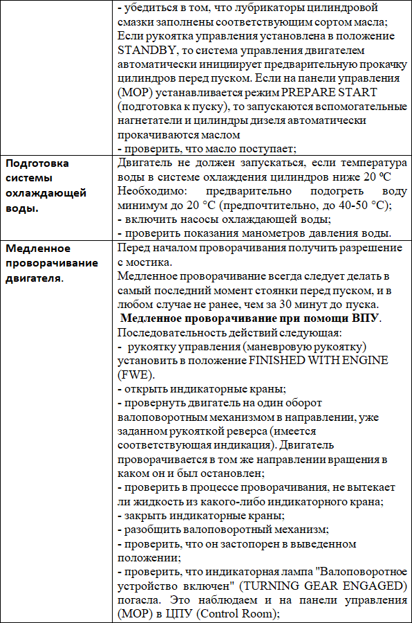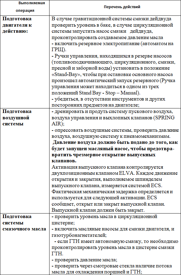 1.3.2.1. Подготовка к пуску двигателей «MAN Diesel & Turbo» типа МЕ и их систем