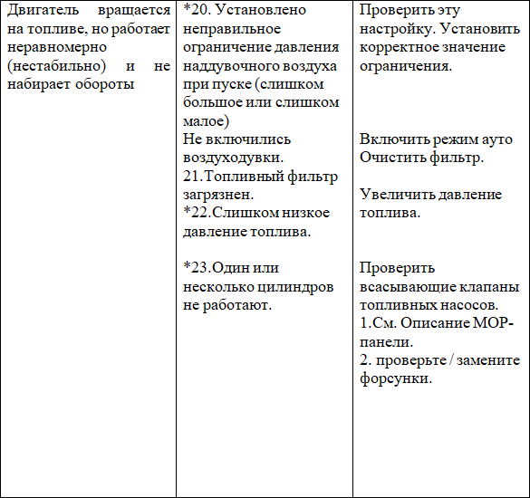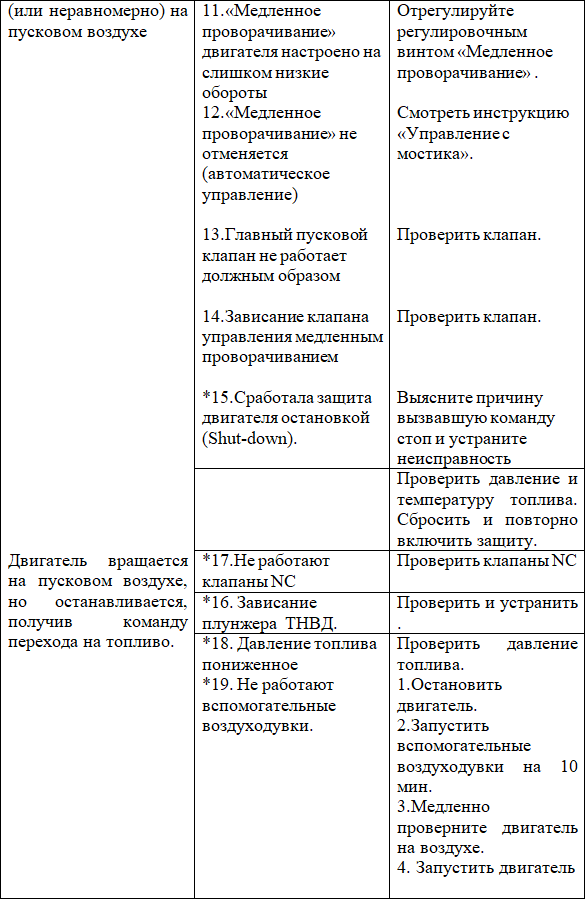 В таблице «Неисправности при пуске ГД» указаны некоторые возможные причины сбоев при запуске, по которым может быть дана следующая дополнительная информация и комментарии.