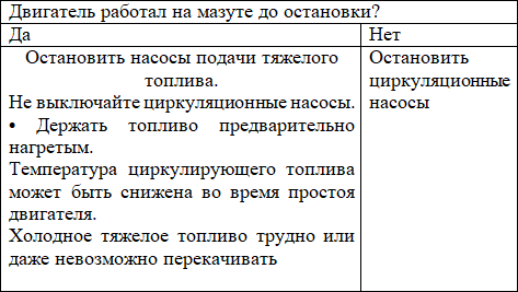Перед приходом в порт следует определиться на каком топливе проводить маневры. Переход на другое топливо должен производиться за час до предполагаемых первых маневров.