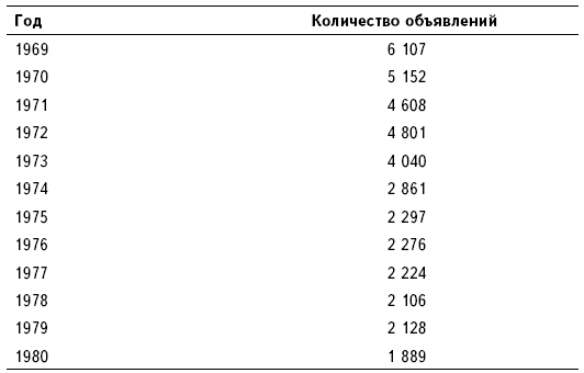 Таблица 2.4. Объявления о слияниях и поглощениях, 1969–1980 гг.