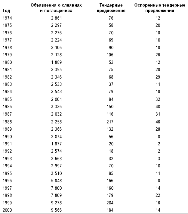 Таблица 2.6. Тендерные предложения о слияниях и поглощениях, 1974–2000 гг.