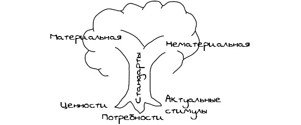 Второй вид концепций, с которым мы познакомимся – образные. Здесь весь материал упаковывается в графический образ того или иного предмета, изображенного в упрощенном виде. Вот, например, дерево мотивации сотрудника (рис. 14):