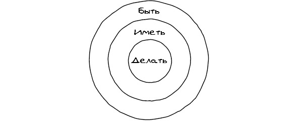 Эти три формы изображены в виде эдакой мишени (здесь важен именно образ мишени), потому что наша цель – центр мишени, то есть, форма «делать». Только тогда собеседник понимает, что ему оставить, как есть, а что менять. Давай приведу пример. Ты даешь обратную связь человеку, который только что при тебе попробовал что-то продать. Если ты скажешь «ты хороший или плохой продавец», даже если он захочет прислушаться к твоему мнению, у него вряд ли получится. Что менять – непонятно. «У тебя довольно презентабельный внешний вид, но не слишком грамотная речь» – будет чуть получше, это уже форма «иметь». И только когда он услышит что-то а-ля «ты хорошо установил контакт, но плохо выявил потребности», а еще лучше «когда ты проводил презентацию, ты хорошо описал сильные стороны, но никак не коснулся слабых, это могло вызвать у клиента ощущение, что ты идеализируешь, и не хочешь говорить о слабых местах, замалчиваешь. Попробуй в следующий раз либо обозначить одну-другую слабость товара, либо не так много сыпать достоинствами». Заметь, в последнем примере я дал понять, какого поведения жду от него в будущем. То есть желательно поменьше тыкать человека носом в его косяки, лучше наоборот говорить о желаемом поведении в дальнейшем. Не «твоя презентация была слишком короткая», а «попробуй в следующий раз сделать презентацию длиннее».