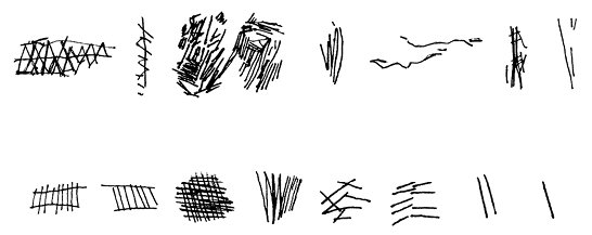 Гравированные куски охры, найденные в пещере Бломбос около южной оконечности Африки, имеют примерную датировку 70 тысяч лет назад. Считается, что это одна из самых ранних форм изобразительного искусства, наделенных символическим значением. Похожие рисунки находили по всему югу Африки на кусках камня, бусинах из ракушек и скорлупе страусиных яиц. Содержат ли эти гравюры какую-либо информацию или это просто почеркушки для развлечения?